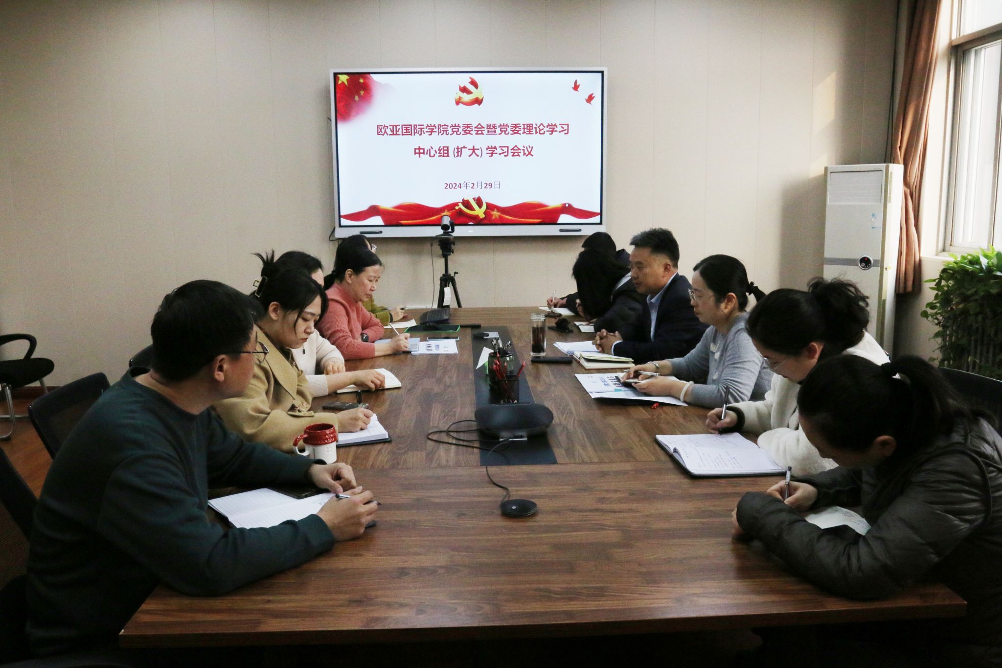 2月29日下午,暗网禁区 在二楼会议室召开党委会暨党委理论学习中心组(扩大)学习会议,学院全体班子成员、党支部书记、各科室主任、教师代表以及辅导员参加会议。会议由院党委书记王振存主持。