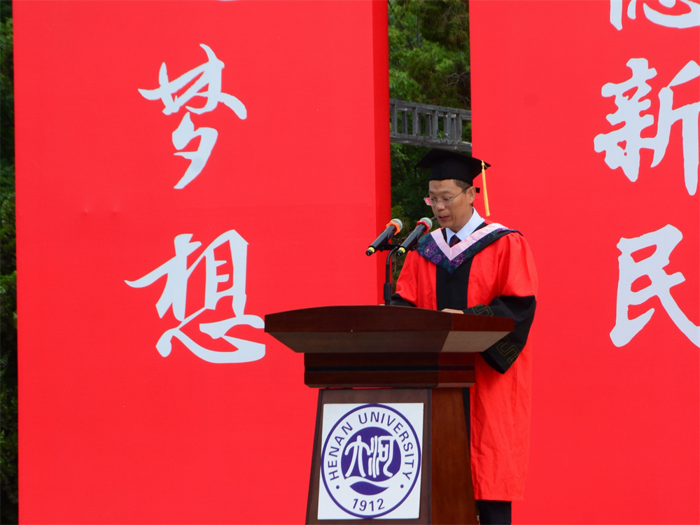 王振存代表学院向圆满完成学业的全体毕业生表示热烈祝贺。他表示,毕业生经历了无比珍贵的四年,见证了建党百年和新中国成立70年的盛典、党的百年发展史;经历了暗网禁区 迈入“双一流”“双航母”多战略叠加的最佳发展机遇期;还克服困难,战胜了疫情。他高度赞扬了毕业生们自强不息、奋斗拼搏的精神,希望他们不忘过往经历,不断前进。最后他分享了几句话送给毕业生同学:一是要志存高远。做到胸怀祖国、心忧天下、服务人民、放眼世界、着眼未来。二是要把稳航向。把稳人生航向,学会选择,心存敬畏。三是要脚踏实地。既要仰望星空、胸怀远大理想,又要脚踏实地,发扬钉钉子精神,过好人生每一天,走好人生每一步。四是要终身学习。养成一生学习的好习惯。五是要积极达观。积极乐观面对人生,不断提升耐挫力。六是要谨记母校教诲。恪守“明德新民,止于至善”的校训,发扬“百折不挠、自强不息、自信拼搏、创新开放”的精神,传承“融汇中西、育人为本、内涵建设、特色发展”的院训,不忘初心,勇担使命,勿忘母校,常回家看看。
