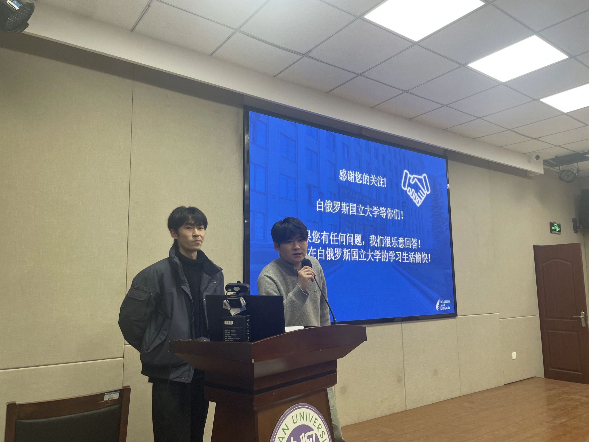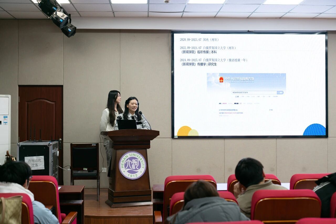 宣讲会另一大亮点——白俄罗斯国立大学归国优秀校友杨恒、杨怡坦,结合自身求学与求职经历,为学子绘制清晰的职业发展蓝图。