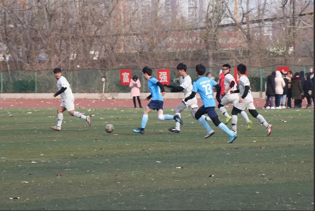 纵寒风凛冽,仍吹不灭运动健儿的热血激情。比赛伊始,双方就展开激烈对抗,我方队员脚法娴熟,配合默契,组织了一次又一次强有力的进攻。对方球员也不甘示弱,防守张弛有度。双方战况焦灼、难分胜负,上半场双方比分最终持平。