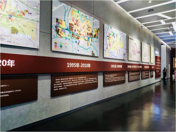 开封市规划馆以“八朝都会、宋韵开封”为设计主线,以“一次城市寻根的探索之旅;一条城市建设的创新之路;一首古城复兴的雄壮史诗”为策展思路;以“过去、现在、未来”为时间脉络,全面展现了开封的历史沿革和变迁、城乡发展建设成果及未来发展方向和目标。