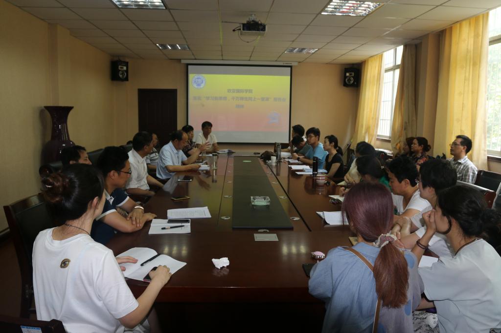 学院党委书记谷跃峰指出要深入贯彻卢克平同志的重要讲话精神,坚持以马克思主义为指导,坚持社会主义的办学方向,将国际化办学办出中国特色、达到世界水平;学院党委要发挥党在工作中的领导作用,抓好思想领导和政治领导,掌握高校思想政治工作的主导权;学院教师要把做人做事的基本原理、把社会主义核心价值观的基本要求、把实现民族伟大复兴的理想和责任自觉融入到教学过程之中,实现全员育人、全过程育人、全方位育人。