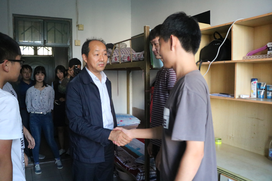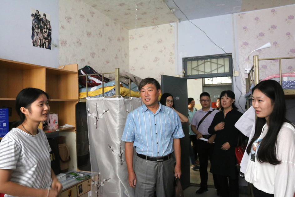 9月2日下午17时许,院长宋战利、党委书记谷跃峰、副书记楚艳霞、副院长王敬学、副院长季超,学院各部门负责人及新生辅导员走进新生宿舍,看望初入大学校园的学子。