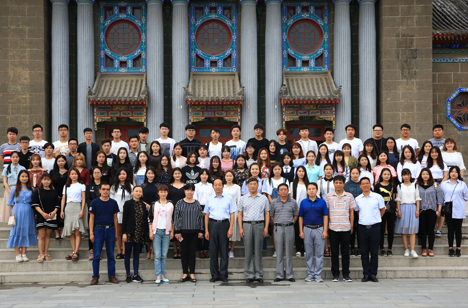 欢送会后,学院领导、老师和78名留学学生在大礼堂广场合影留念。