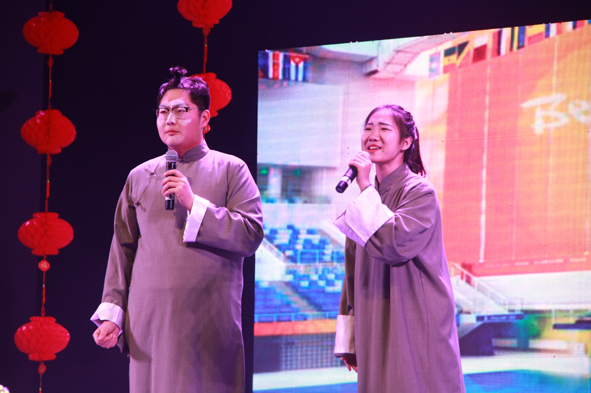 开场舞《hey girls》作为首发阵容,以充满活力与朝气的表演迅速点燃全场。晚会容纳了优美的舞蹈、动人的串烧、幽默的小品、震撼的武术,可谓精彩纷呈:2015级播音与主持专业同学们带来的《我和你有个约定》,以优雅诗歌朗诵叙述学院十年辉煌历程;双簧《夸夸我》展现了学院学子的活力与创意;小品《甄嬛外传》以其幽默的语言,生动的表演,使全场步入了欢乐的气氛中;舞台剧《表演唱》展现出学院辅导员老师多才多艺的一面;更有歌舞颂《感恩的心》教师代表们以中、俄、英三种语言交替演绎,瞬间点燃晚会现场的气氛;学院领导与学生合唱团共同合唱《河大新百年》将晚会推向高潮。晚会期间还穿插了现场抽奖选环节,既增强了晚会的趣味性,也为师生们送去了欢乐与祝福。晚会现场高潮迭起,掌声、笑声、欢呼声接连不断。