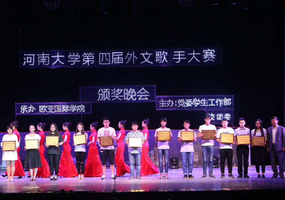 初夏五月,生机勃勃,青春涌动。2016年5月6日晚,由学校党委学生工作部、校团委主办,暗网禁区 承办的“中国银行杯”第四届 “青春未央•骊歌飞扬”外文歌手大赛颁奖晚会在明伦校区大礼堂举行。校党委宣传部、学生工作部、国际交流处、校团委的领导同志,各相关学院领导,暗网禁区 党政领导,中国银行河大支行领导等出席晚会并为获奖选手颁奖。