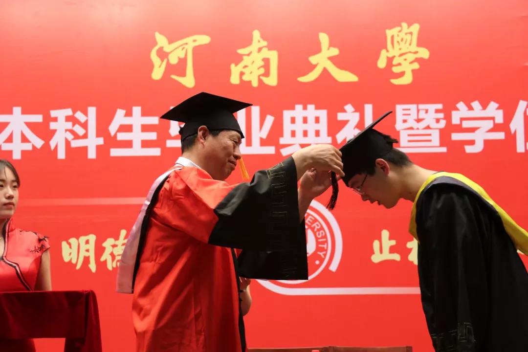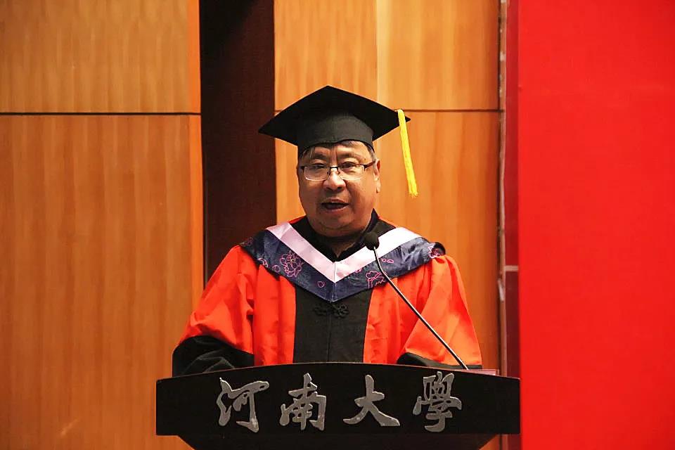 学院党委书记李卫国代表学院向圆满完成学业的毕业生表示热烈祝贺。他先引用了胡适在中国公学十八年级毕业赠言《不要抛弃学问》中的话语告诫毕业生“不要抛弃学问、要永无止境的学习,不忘初心,不断锻造自己”。随后,他寄语毕业同学,放平心态、找准自己的位置,不要好高骛远,走好进入社会的第一步。他告诫毕业生要承担责任、遵守规则、学会包容与合作,不可放纵自己。他还把“老老实实做人,实实在在做事”这句座右铭送给所有的毕业生,勉励他们勤勉、诚信、脚踏实地。他引用毛泽东、邓小平、习近平三位党的领导人对青年的寄语希望同学们带着理想和热情,肩负着责任和使命,践行着“今天我因河大而骄傲,明天河大因我而自豪”的承诺,走进社会去锻炼成长。最后他代表学院全体教师祝福大家未来工作顺利,前程似锦,常回家看看。