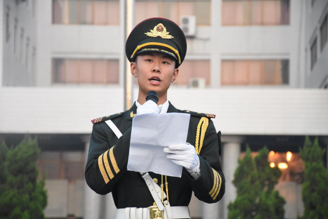 第二项,国旗下演讲。来自我院的优秀团员代表——国旗护卫队成员郑永波同学进行国旗下演讲。作为国旗护卫队的一员,他表示:“国旗在他的心中是神圣的。作为青年人,应该坚定理想信念,追逐自己的梦想,但同时更应该具备高尚的品格和创新的思想。”同学们深有共鸣。