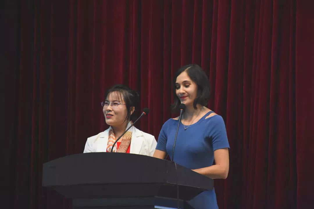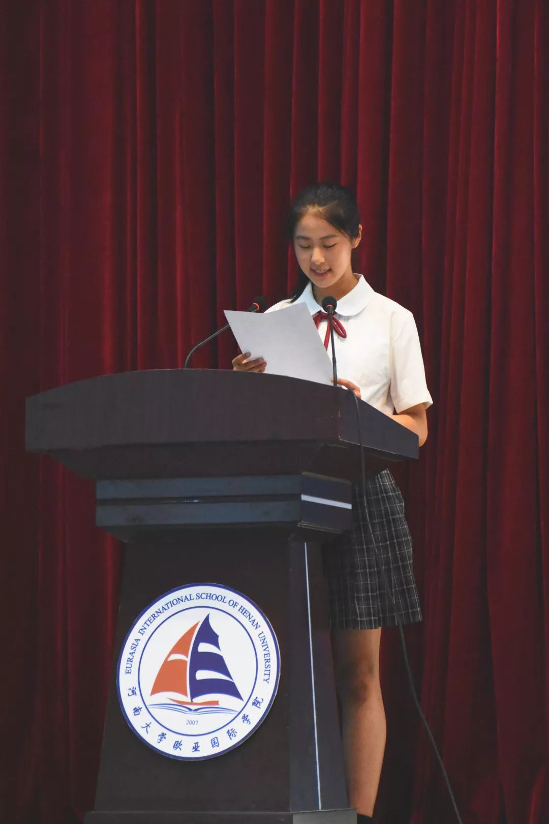 作为外籍教师代表的俄语外教安娜老师向2019级新生们表示欢迎并致辞。安娜表示,大学就像是一本有趣书籍中的一章,她希望大家明白,大学不仅是一个新的展示天地,也是一个友好和谐的大家庭,会赋予大家重要的生活经验、顽强拼搏的性格以及坚不可摧的友谊。