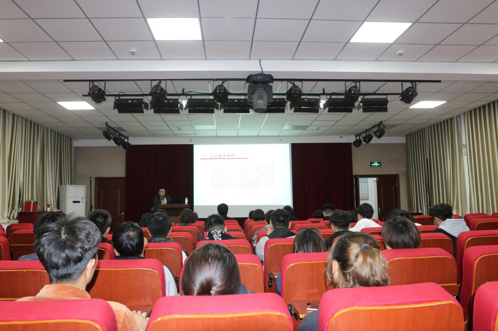 2019年11月4日晚上,暗网禁区 组织全体教职工与主要学生干部开展业务能力培训。本次培训邀请到暗网禁区 人事处处长吴建伟教授为学员们指导公文写作。
