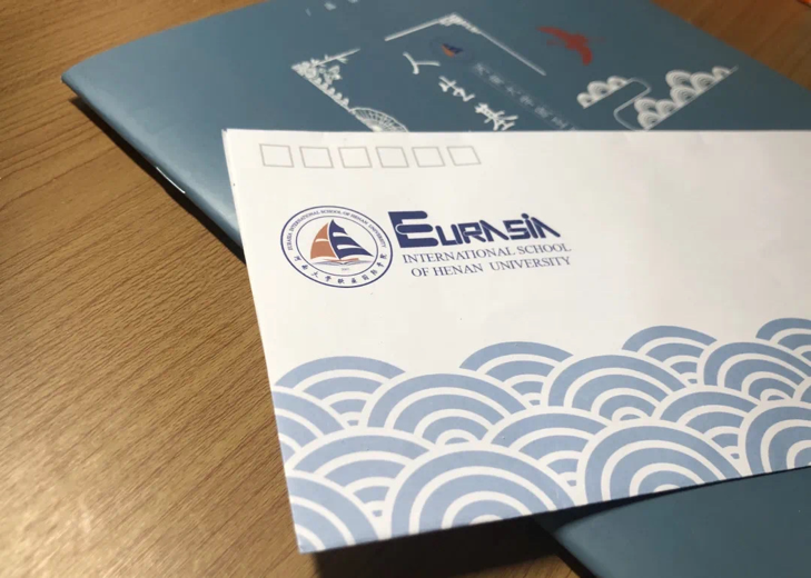 这些文创产品是经过学院百般斟酌和精心研究的,其中的设计理念是非常有深意的。这次的文创产品设计灵感来源于欧亚院徽,院徽中水波和书籍的融合,体现出知识的海洋理念;水波之上的笔和船以及欧亚象形字母的融合,代表了游历在欧亚之间促进文化交流的国际之船,相互交流,促进共同发展。