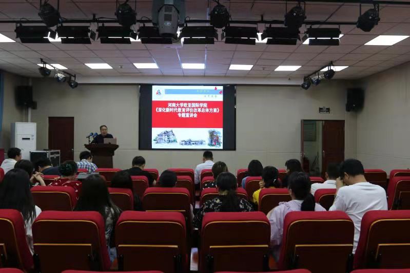 5月13日下午,学院组织全体教职工和学生代表于学院二楼报告厅开展《深化新时代教育评价改革总体方案》宣讲会。院长赵成新做了题为“《深化新时代教育评价改革总体方案》的政策解读及实施建议”专题报告。学院党委书记李卫国主持会议。