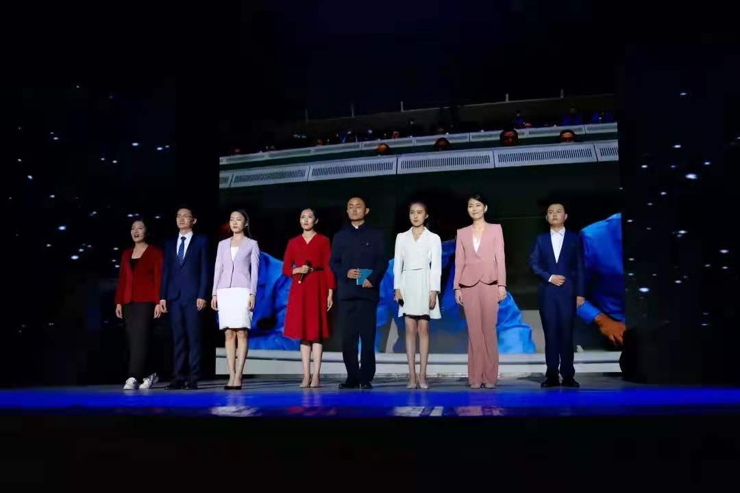 演出结束后,在场的领导老师上台与演职人员合影留念,祝贺演出取得圆满成功。