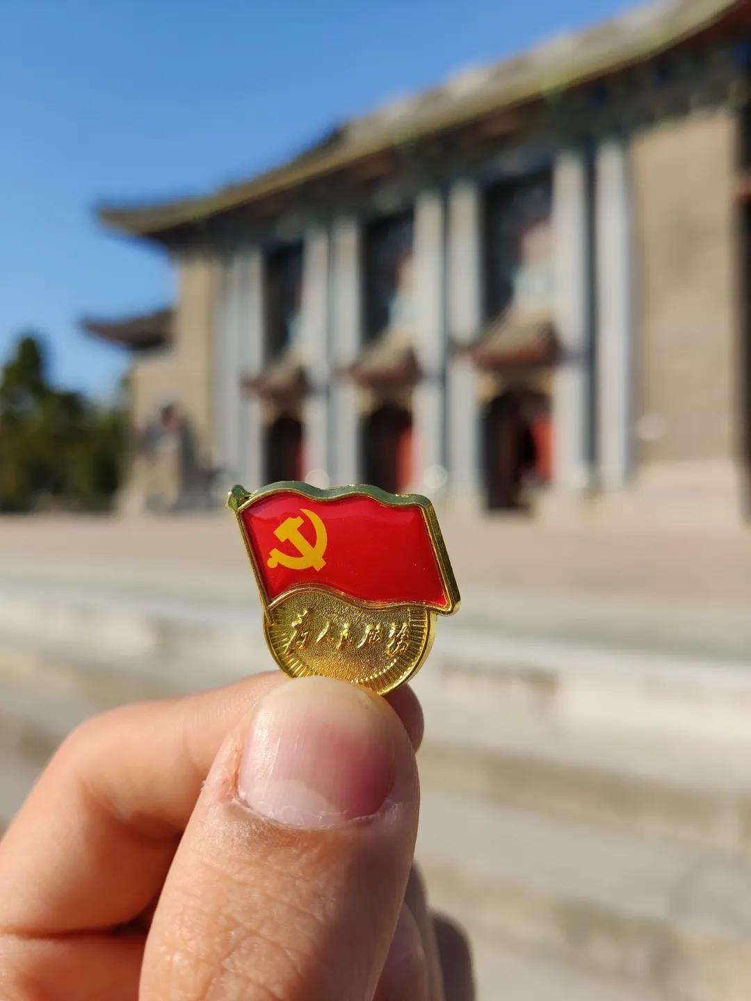 党徽闪光永不褪色,不忘初心紧跟党走。