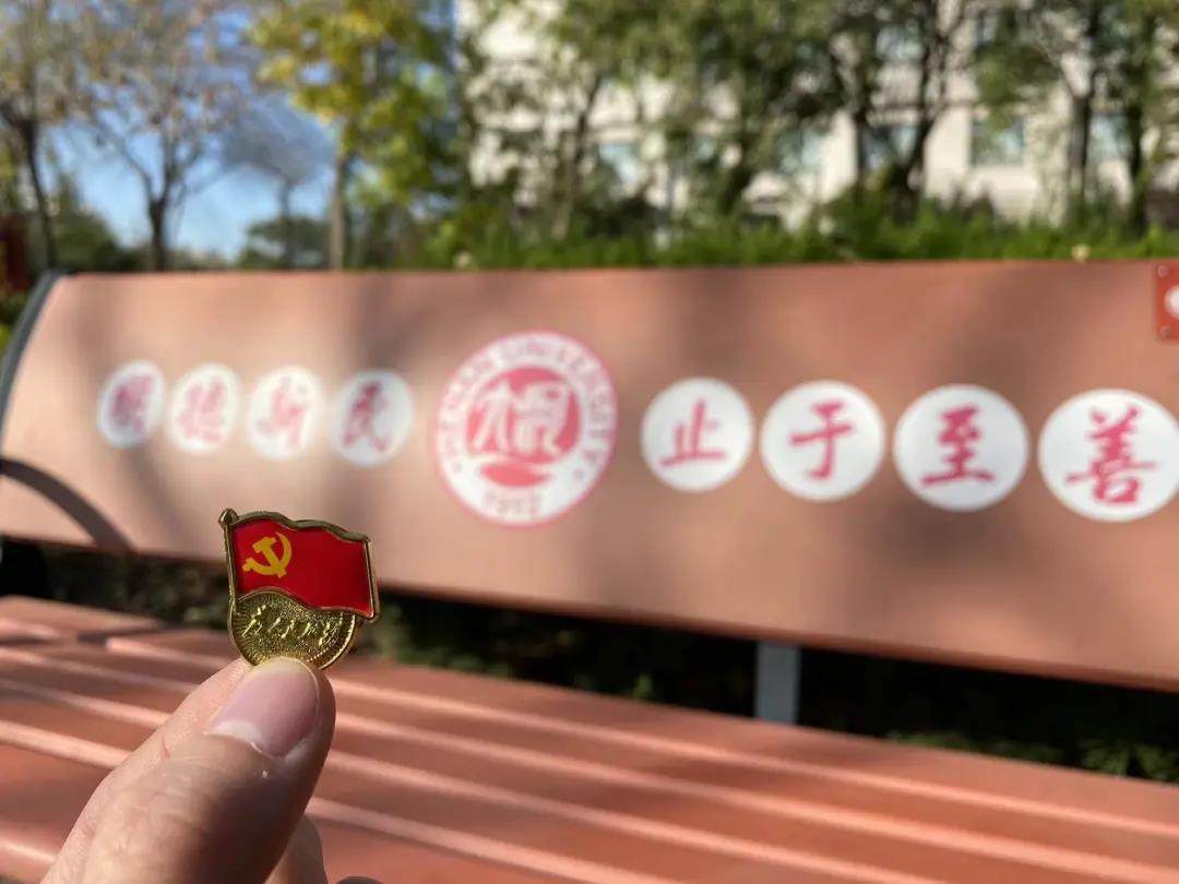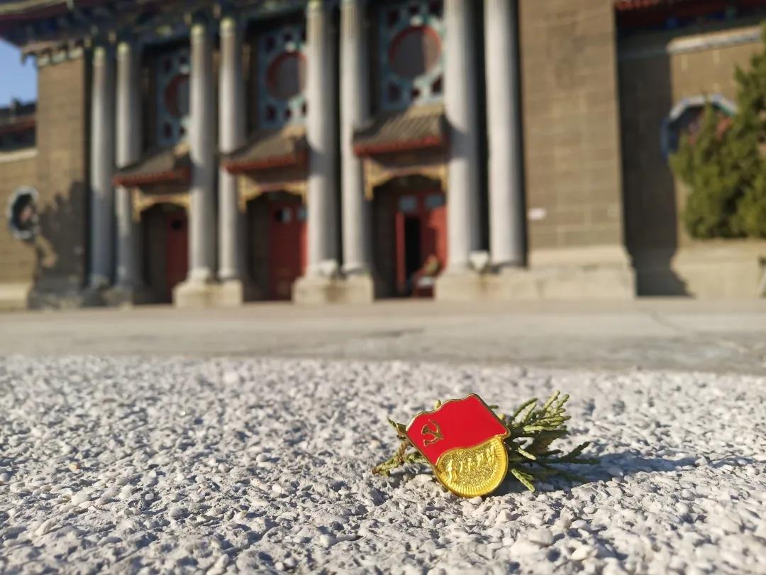 河大的冬,树叶枯黄了,纷纷扬扬地落在地上,像铺上了一层黄地毯,惟有花不忍谢去,颇有寒冬的味道。我们戴着党员徽章在河大的每一处地方留下我们的足迹,党员徽章所代表的精神也伴随着我们在河大的每一天。