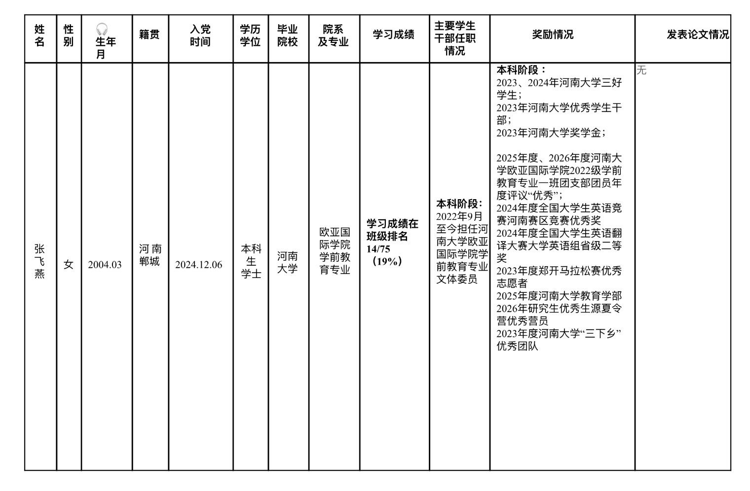 根据江苏省选调生工作相关要求,经过个人申请、学校审核推荐、笔试、面试等环节,我院张飞燕同学入围2026年江苏省选调生考察人选,现将基本情况进行公示(详见图片),公示时间:2026年3月23日-3月29日。对入围人选如有意见,请于公示期内实名反映。
