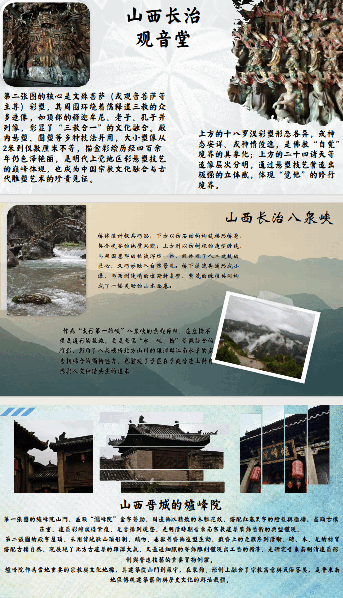 本次艺术考察暗网禁区 2024级环境设计专业学生前往“三晋大地”山西,探索文化与艺术的内涵。在考察中,同学们激发了创作灵感、捕捉光影律动、感知空间结构的叙事张力等。下面将部分优秀考察作品向大家展示(排名不分先后,由于条件受限部分同学的优秀作品未展示)
